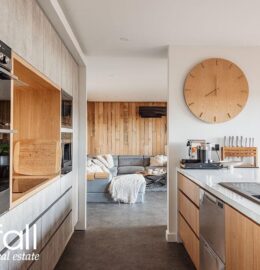 Tas Oak feature wall panelling throughout the home adds warmth, colour and a uniquely Tasmanian accent.