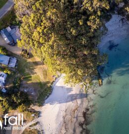 Homes right on the beach are very rare in Adventure Bay – there are fewer than half a dozen or so. Here, there’s no road to cross, just a few steps across the lawn to the water.